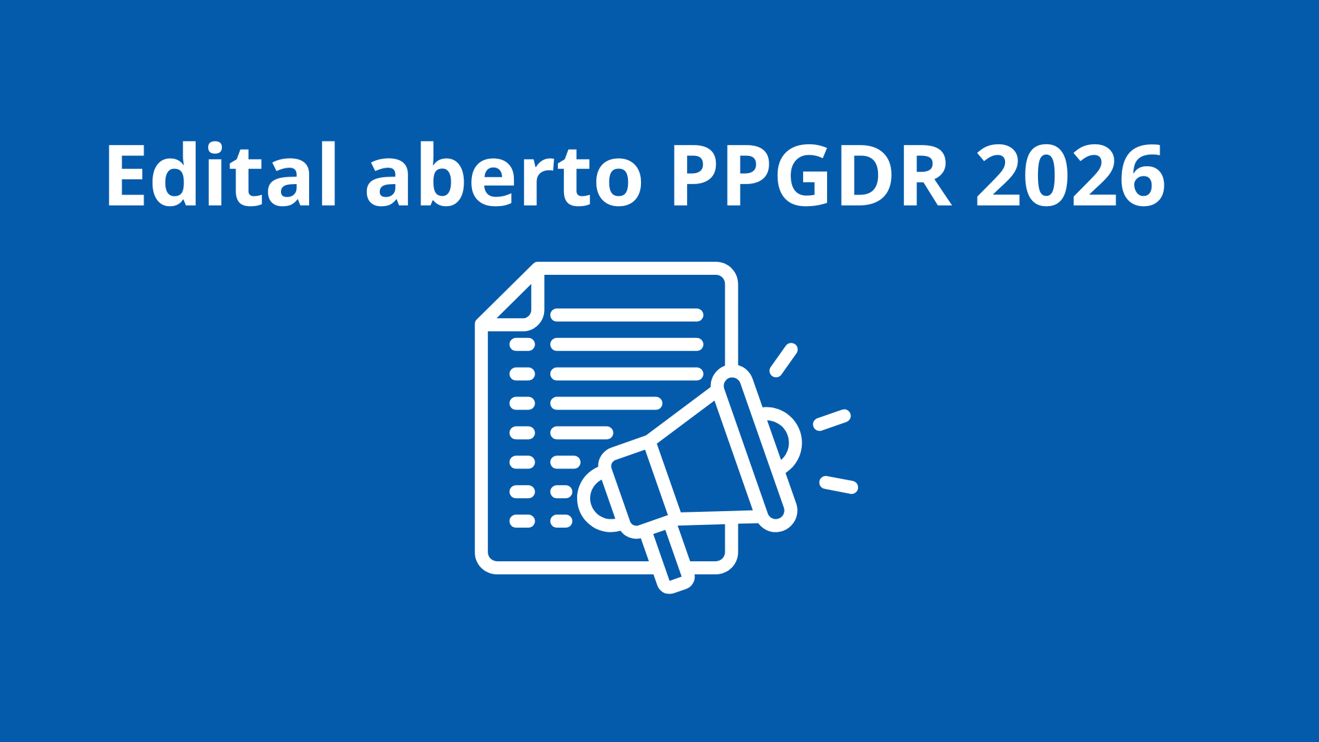 Programa de Pós-graduação em Desenvolvimento Regional (PPGDR) abre inscrição para 2026 Inscrições abertas até dia 06/12. Confira aqui o edital completo Formulário eletrônico de inscrição. Acesse aqui. Anexo III. Acesse aqui. Anexo II. Acesse aqui. Anexo I. Acesse aqui. Termo de autodeclaração. Acesse aqui. Edital de seleção RETIFICADO turma 2026.1. Acesse aqui. Retificação de edital. Acesse aqui. Edital de seleção turma 2026.1. Acesse aqui. TweetWhatsApp Listar Todas Voltar